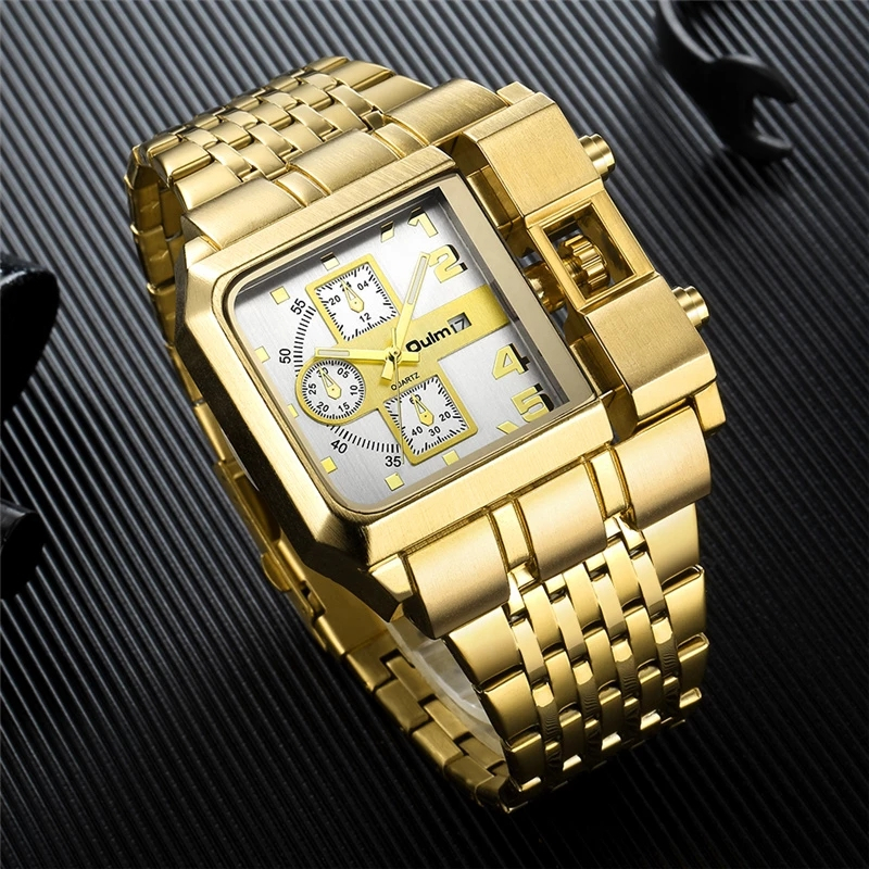 Gold-head Oulm Compass watch– Stylish, classic, and fashionable Oulm luxurious Wristwatch