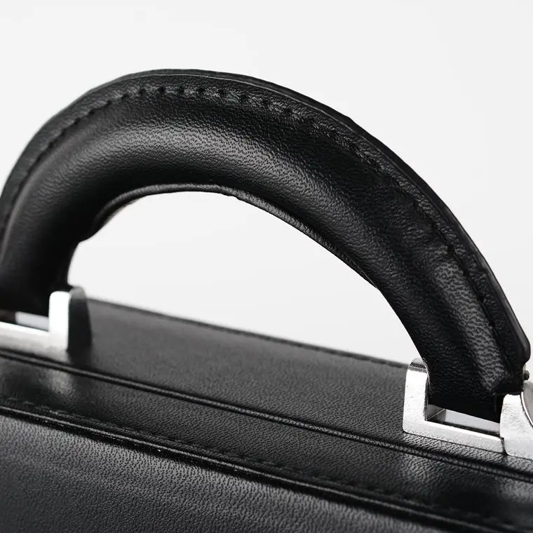 GLARY Black Portable Leather Briefcase, Scratch-resistant Leather, Office Laptop Document Bag case