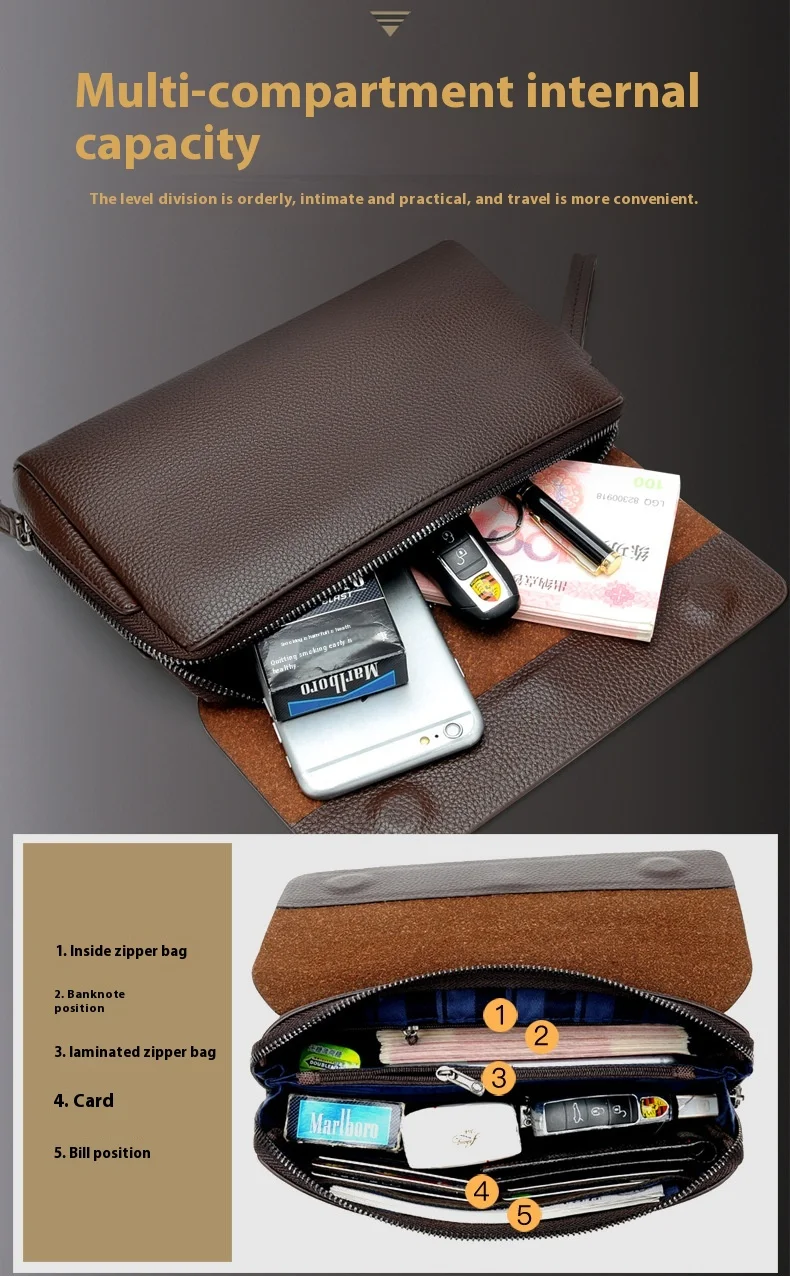 This clutch bag is not just a storage accessory — it’s a statement of taste and sophistication. Whether you’re heading to a meeting, a dinner, or traveling, it keeps your essentials secure and stylishly organized.