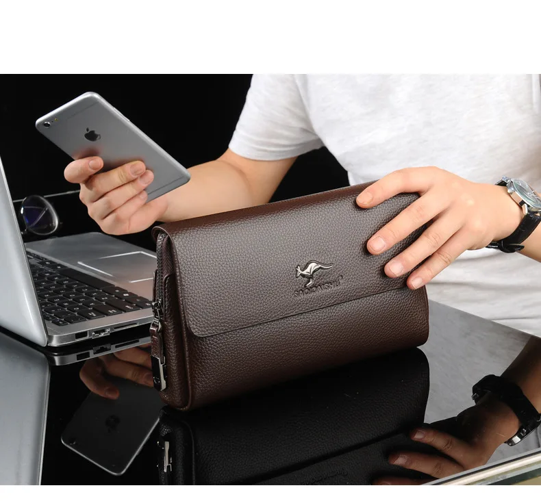 A sleek, compact leather clutch bag that combines elegance, class, and durability — perfect for every modern man.