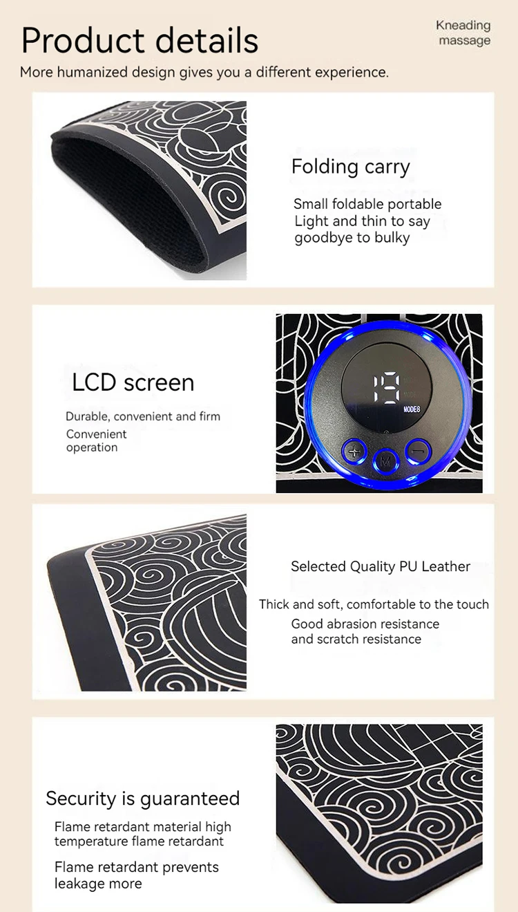 But the good news is that you can now enjoy relaxing foot massage at home anytime. This EMS foot massage mat uses Electrical Muscle Stimulation (EMS) to send small electrical pulses to the feet to stimulate muscles and improve circulation.These pulses make the muscles contract and relax, creating a massage-like effect that can help relieve fatigue and foot pain.