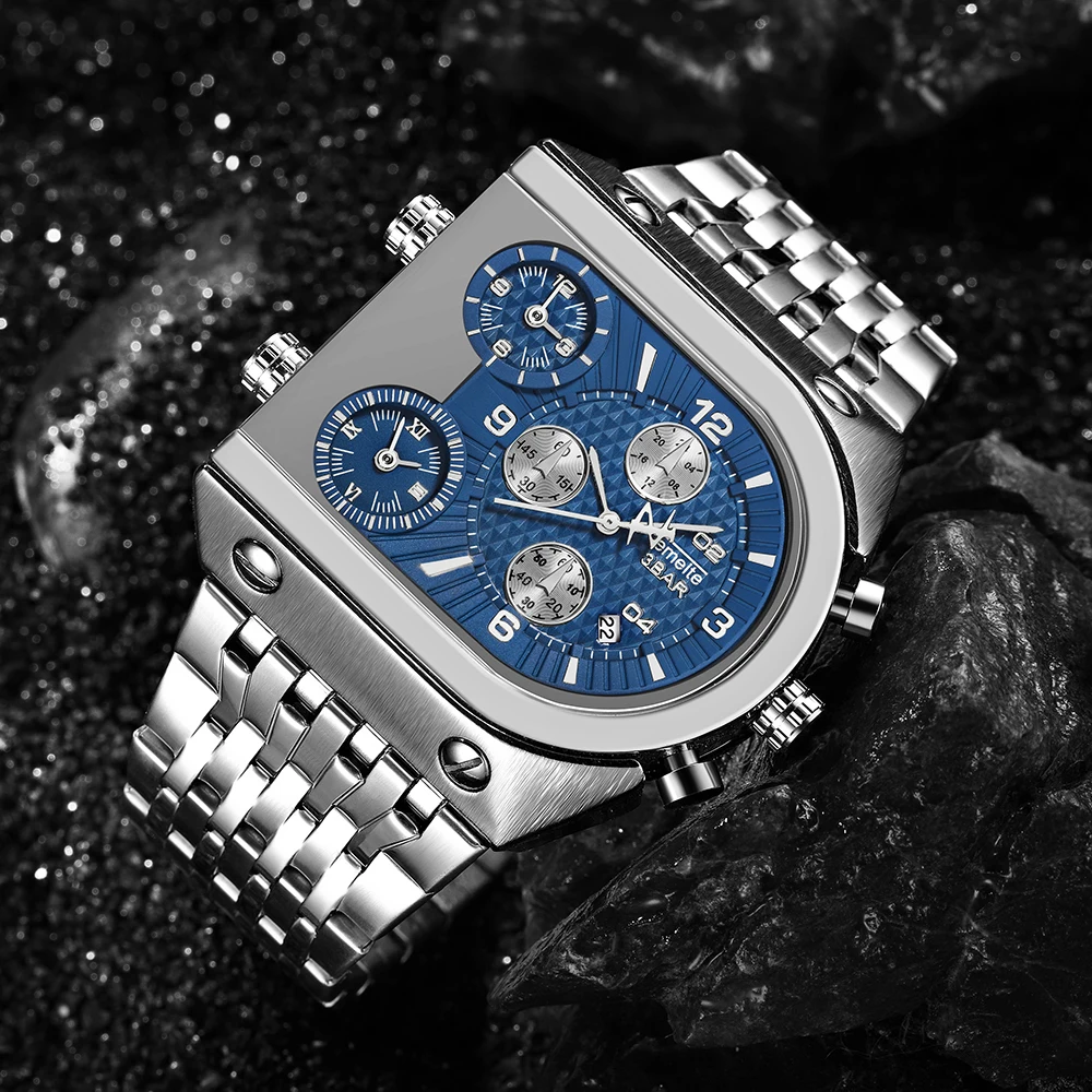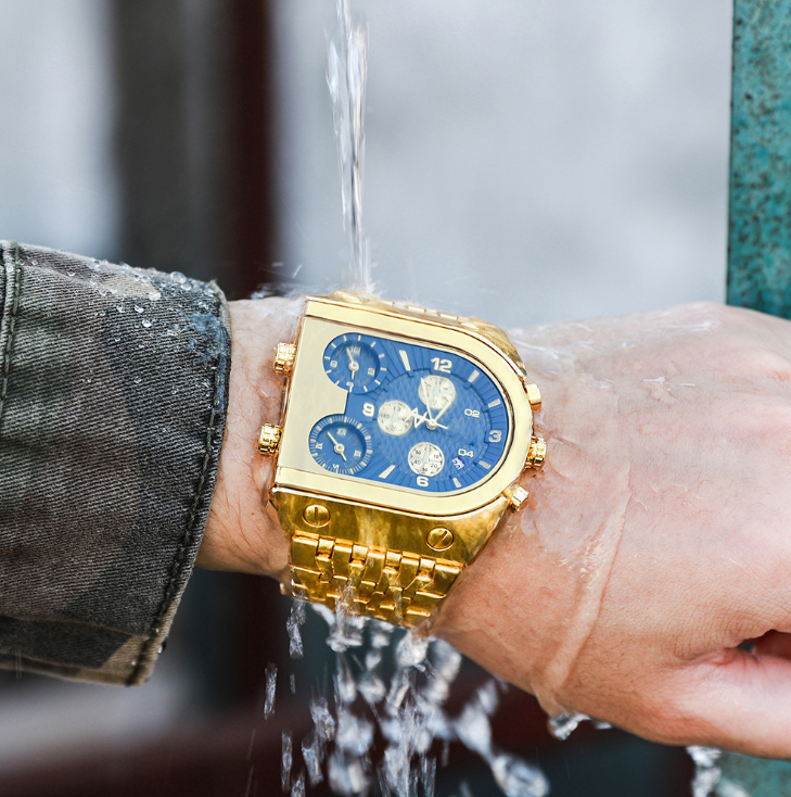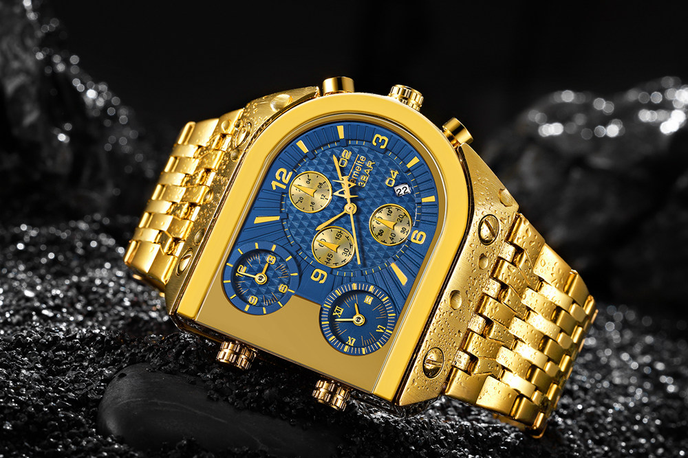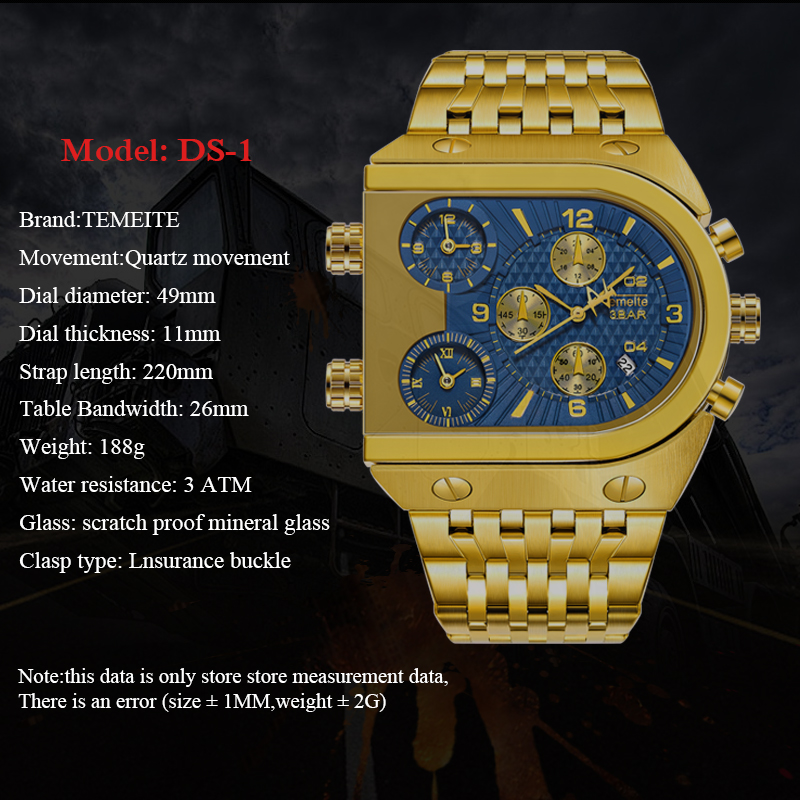 Temeite is a luxury classy quartz wristwatch for men. A unique design, high quality, very elegant and waterproof. It has three (3) multi-function time zones, i.e. you can set the other two times to the time zones of any other countries, It also has an automatic date.