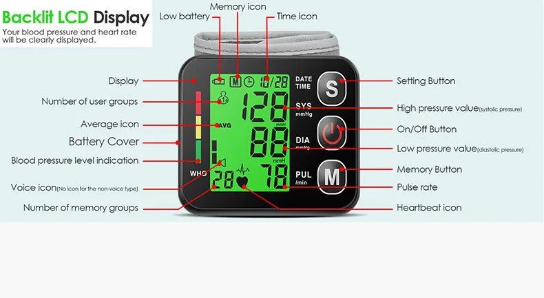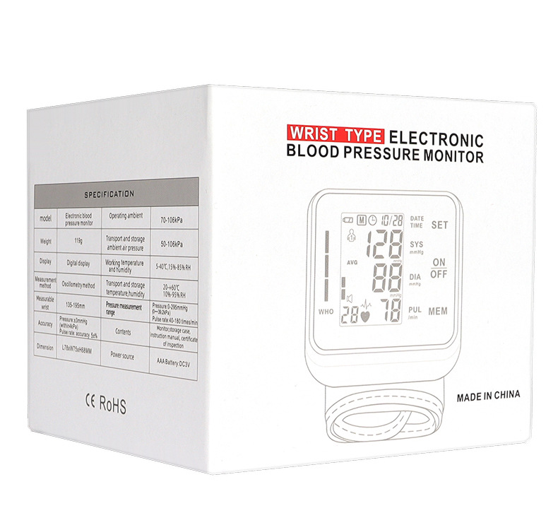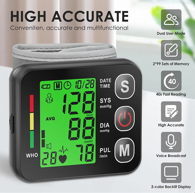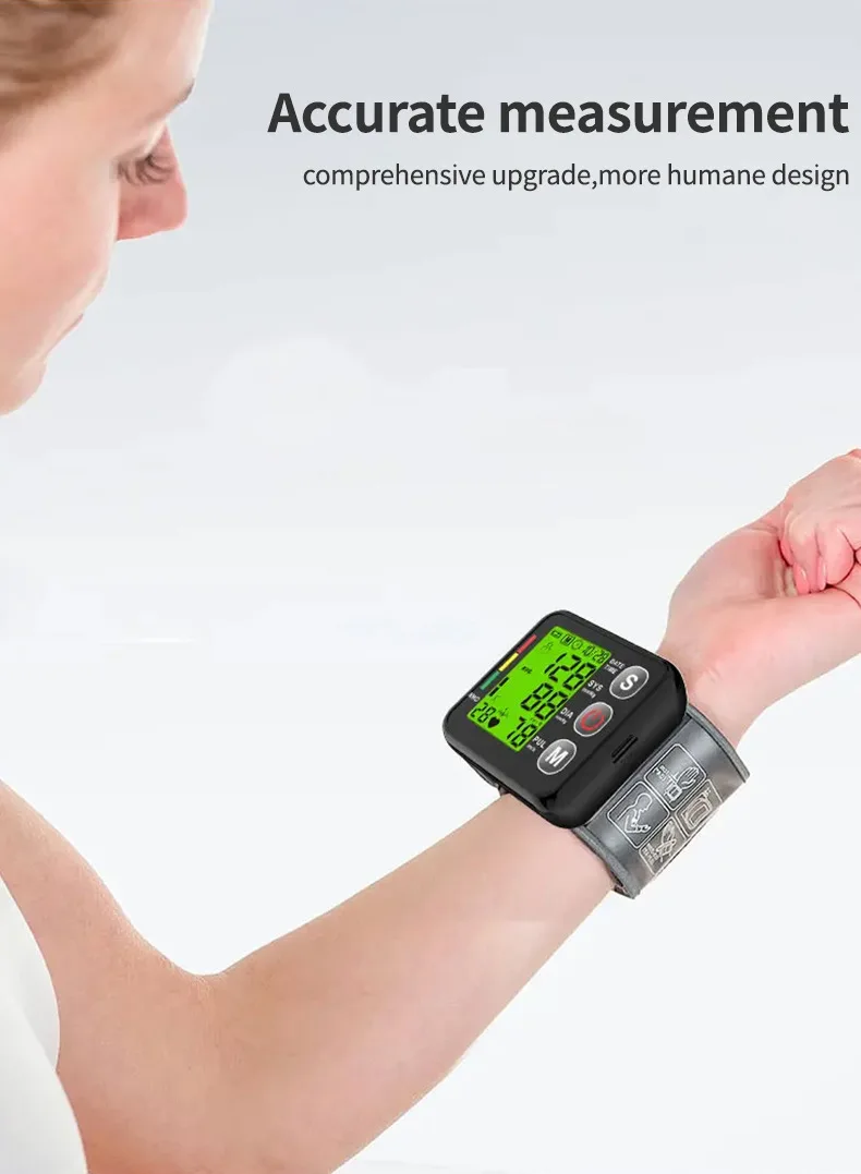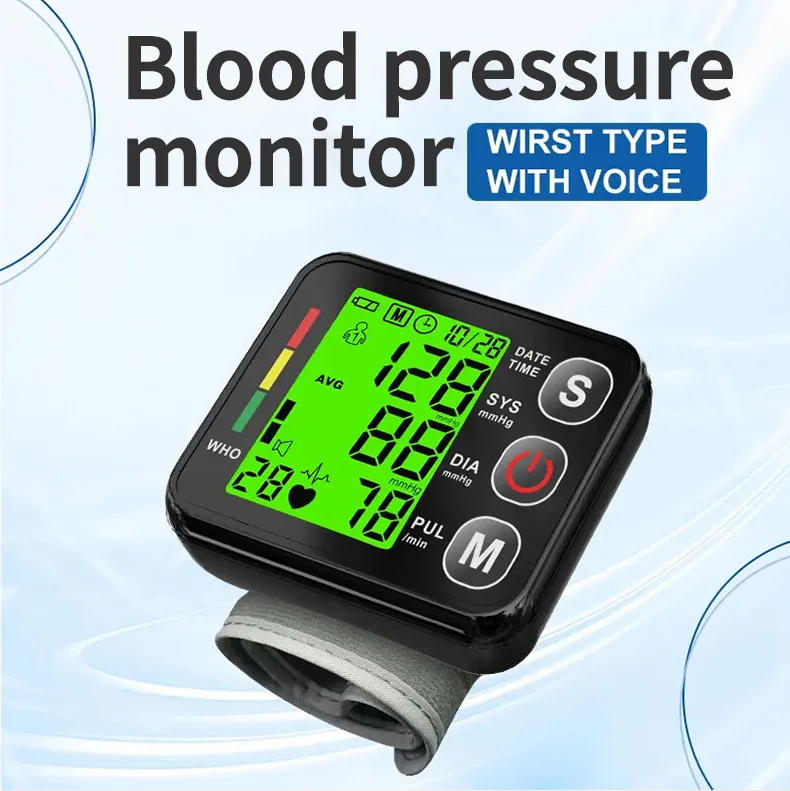 Automatic Digital Wrist Blood Pressure Machine with LCD Display and Intelligent Voice Feedback